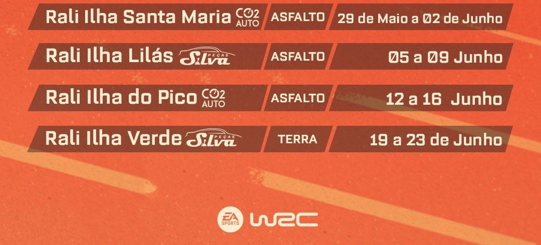 • Rali Ilha Santa Maria (CO2 Auto) – 29 de maio a 02 de junho (asfalto)