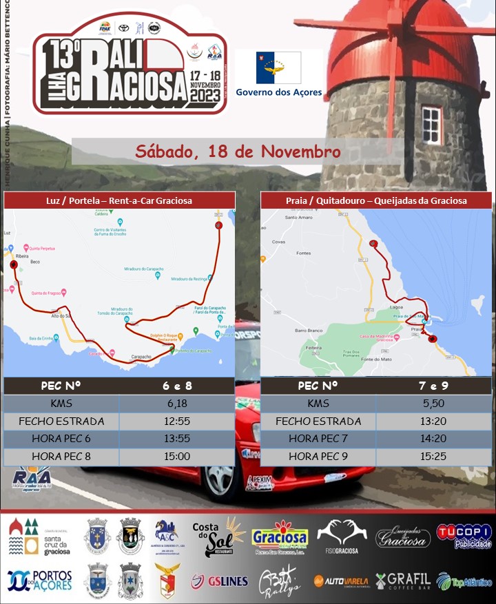 No sábado (dia 18) de manhã correm-se, por duas vezes, Ribeirinha/Limeira–Costa do Sol (PE 3 e 4, com 9,71 kms) e Luz/Barro Branco-Almério e Cordeiro,Lda (PE 5 e 6, com 5,80 kms), enquanto no sábado à tarde os concorrentes vão percorrer Luz/Portela-Rent-a-Car Graciosa (PE 6 e 8, com 6,18 kms) e Praia/Quitadouro-Queijadas da Graciosa (PE 7 e 9, com 5,50 kms).