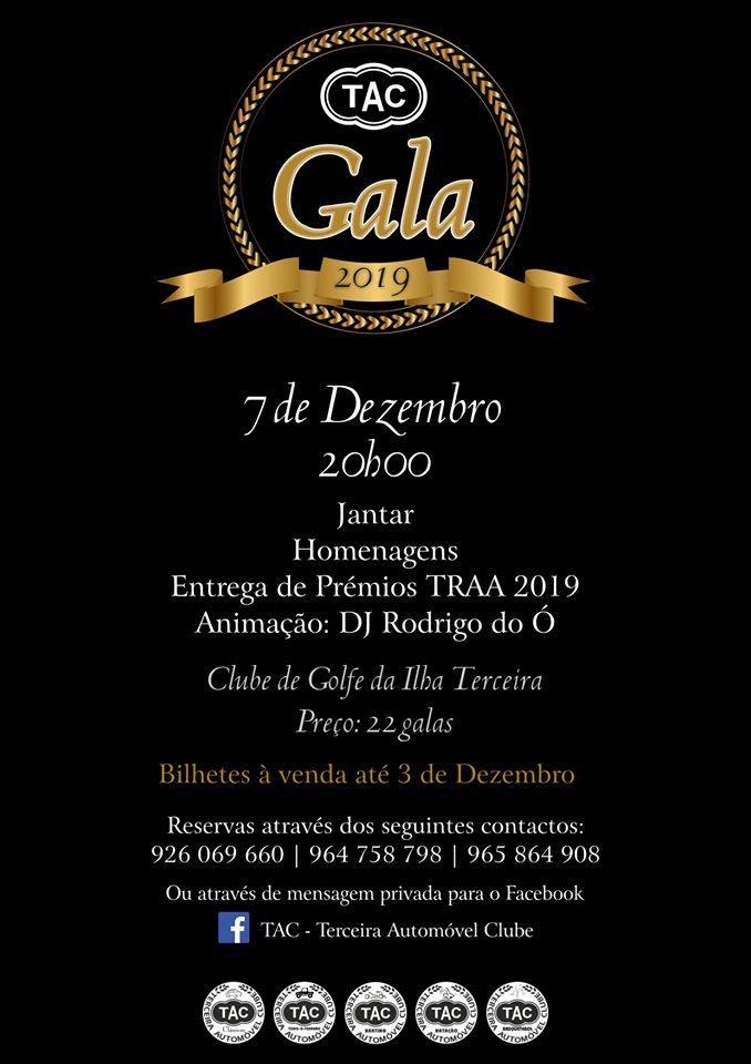 O Terceira Automóvel Clube irá organizar a sua gala no dia 7 de dezembro de 2019, no Clube de Golfe da Ilha Terceira. Neste evento também se procederá à entrega de prémios do TRAA 2019.