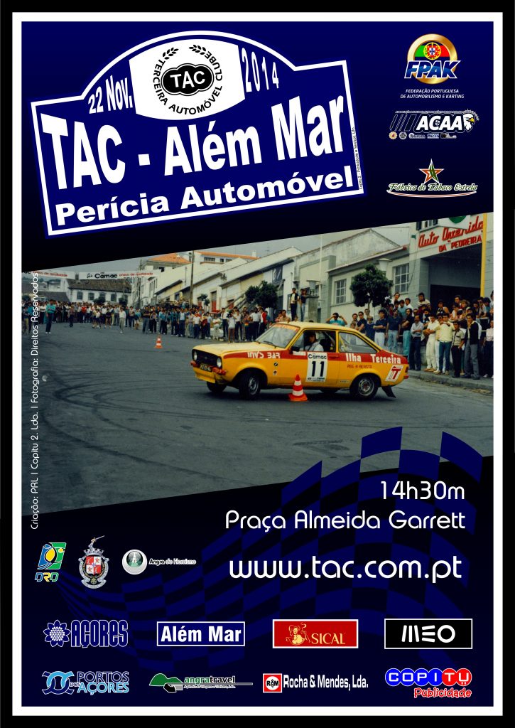 A 22 de novembro e para finalizar a época de automobilismo do clube inserida no programa da “Gala do TAC”, evento que irá juntar toda a família do clube (sócios, secções motorizadas, secções não motorizadas, atletas, órgãos sociais, dirigentes, etc) onde serão entregues vários prémios desde os troféus finais do Troféu Regional de Ralis “Além Mar” Terceira-Graciosa, prémios a atletas das diferentes secções, homenagens a entidades e personalidades e que brevemente será divulgado, o TAC organiza a PERÍCIA AUTOMÓVEL TERCEIRA AUTOMÓVEL CLUBE/ALÉM MAR. A prova terá lugar na tarde de sábado dia 22 de novembro com o percurso brevemente a ser divulgado.